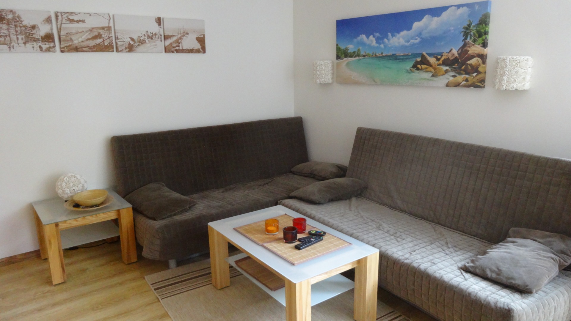Komfortowo wyposażony KLIMATYZOWANY, CAŁOROCZNY apartament na I piętrze dla max. 4 osób w budynku oddanym do użytku w 2015roku, wyposażony w windę położony przy Bulwarze Słonecznym prowadzącym do morza.