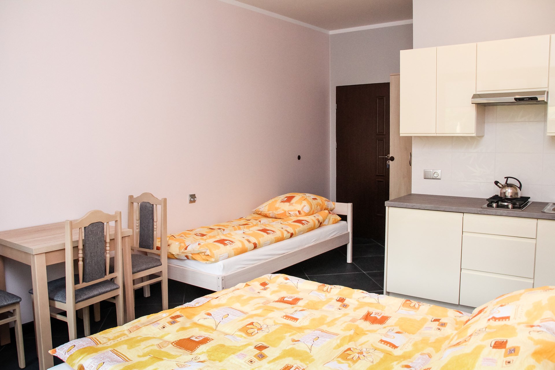 Apartament 3-osobowy z łazienką, aneksem kuchennym, tv i balkonem.