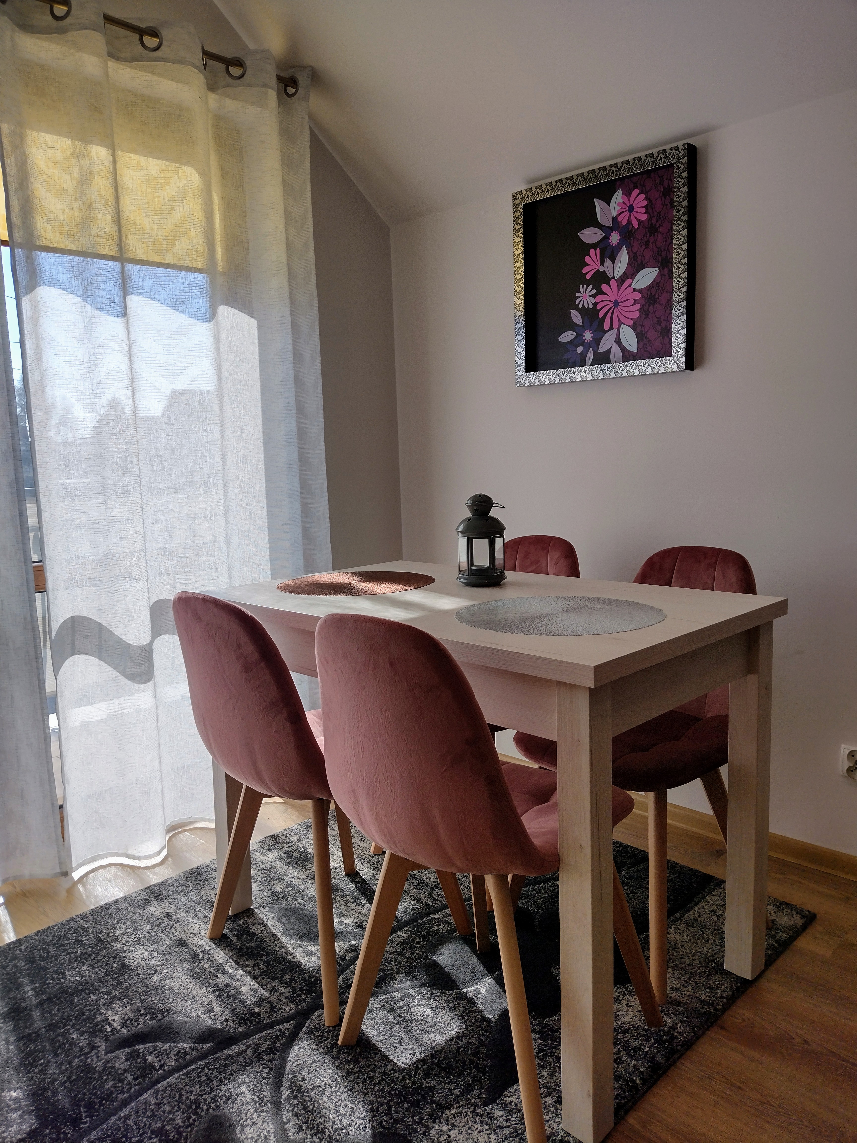 Pokoje •gustownie urządzone. Każdy z łazienką, balkonem, tv oraz dostępem do w pełni wyposażonego aneksu kuchennego (jeden na dwa pokoje).