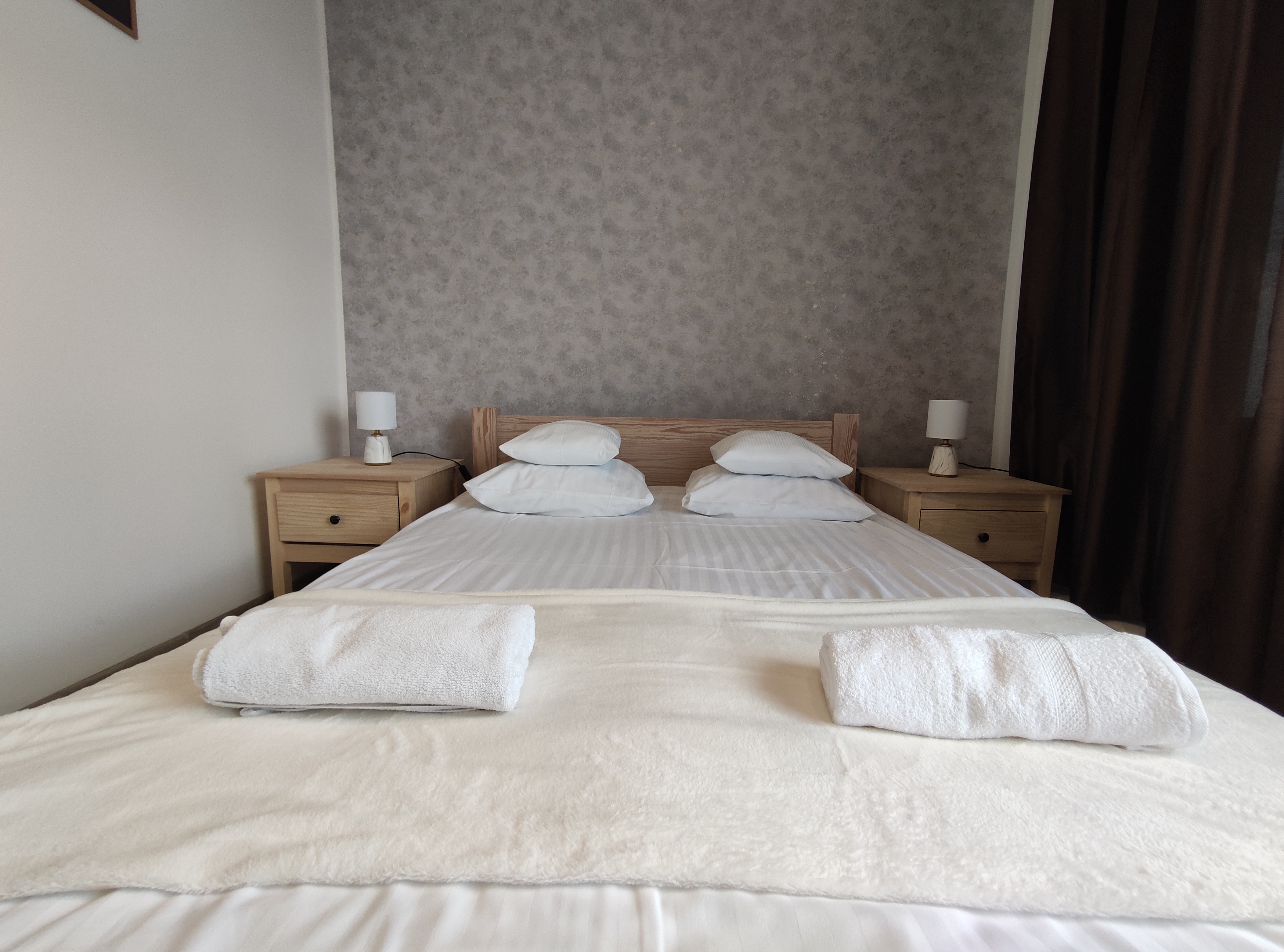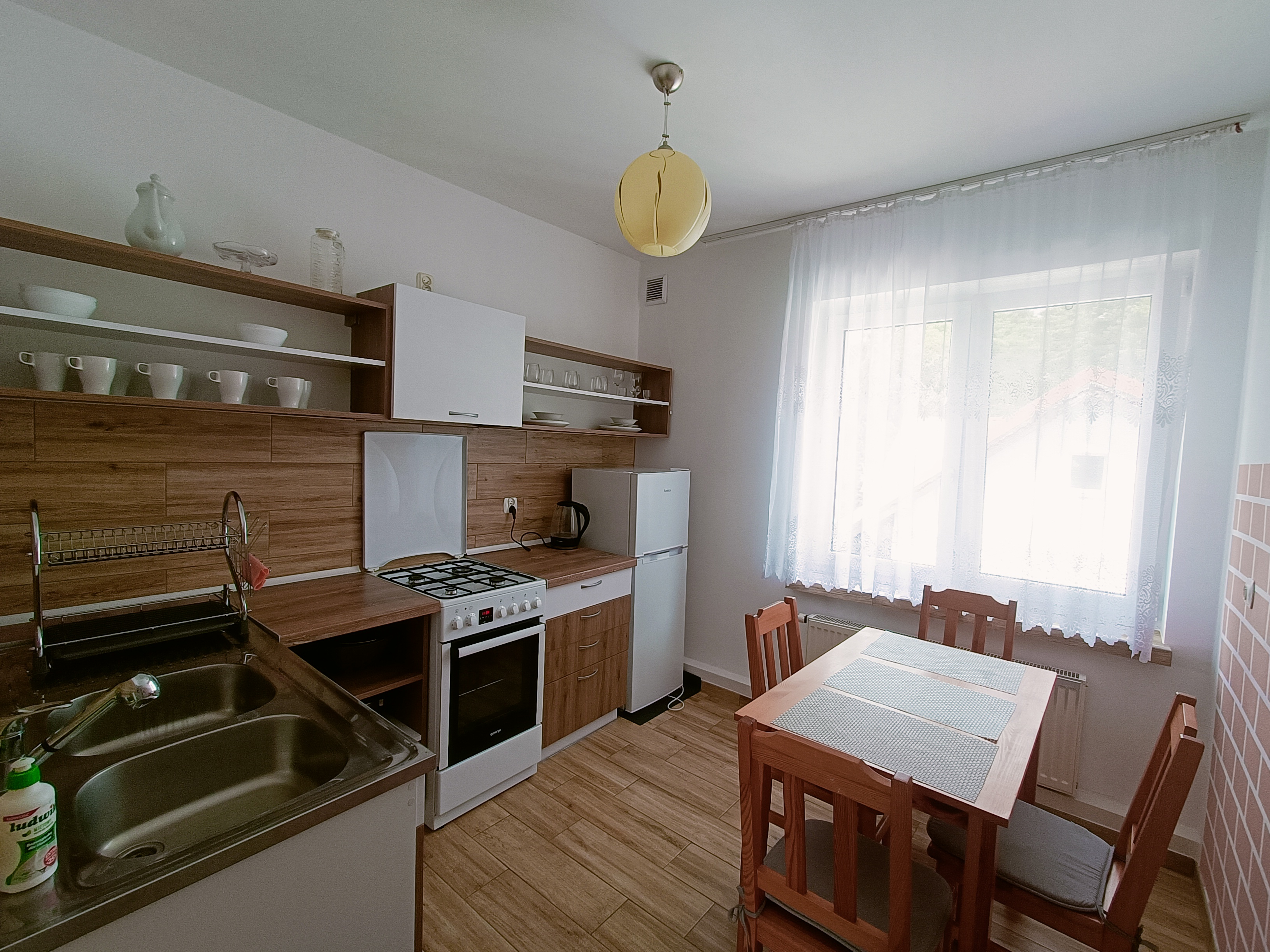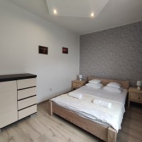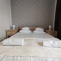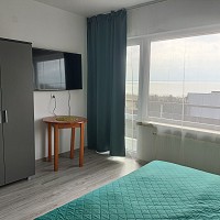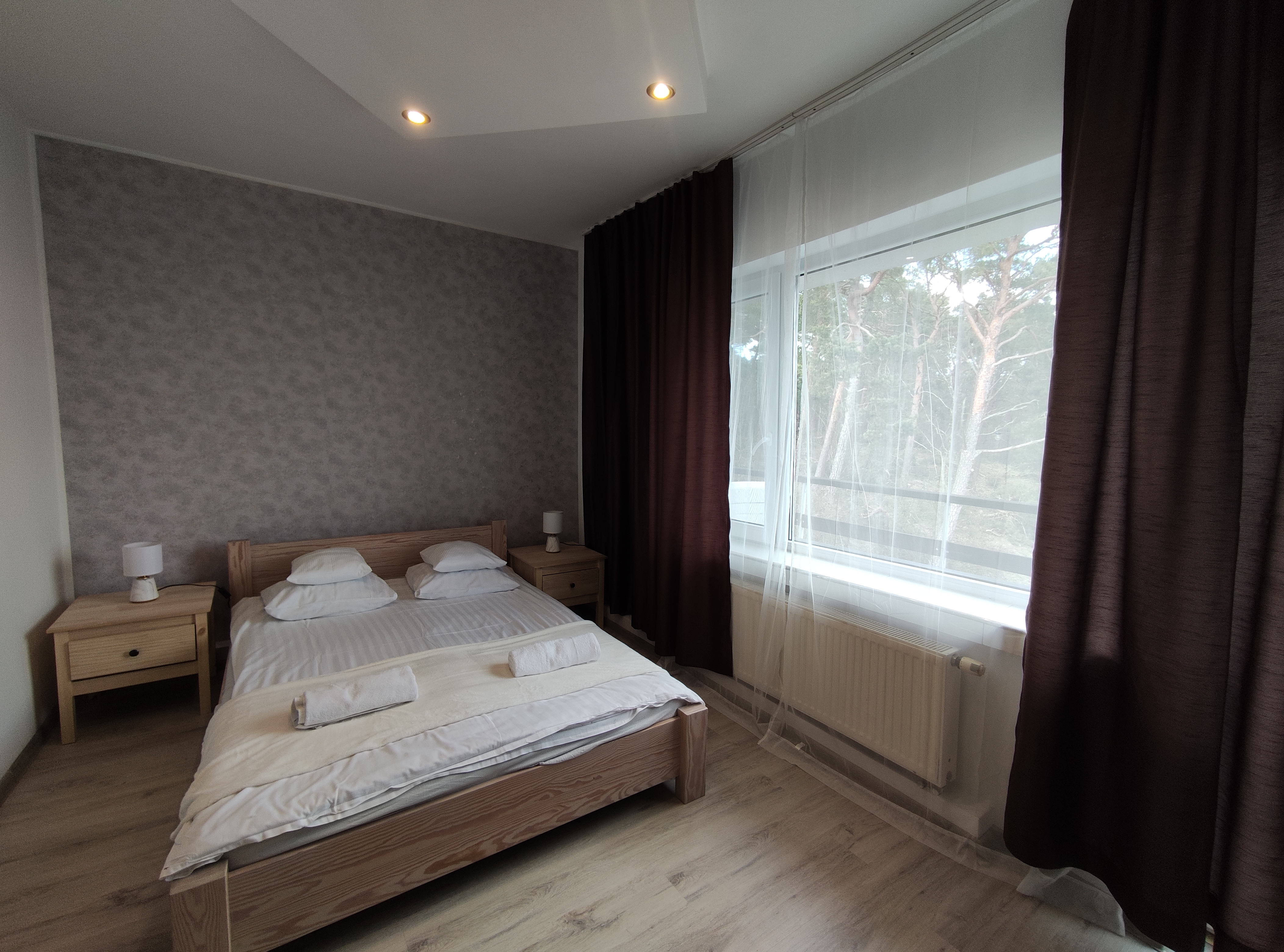 Pokój maści maksymalnie 7 osób, znajduje się na 2 pentrze, trzy sypialni, kuchnia, łazienka, do każdego pokoju balkon z widokiem na zalew
