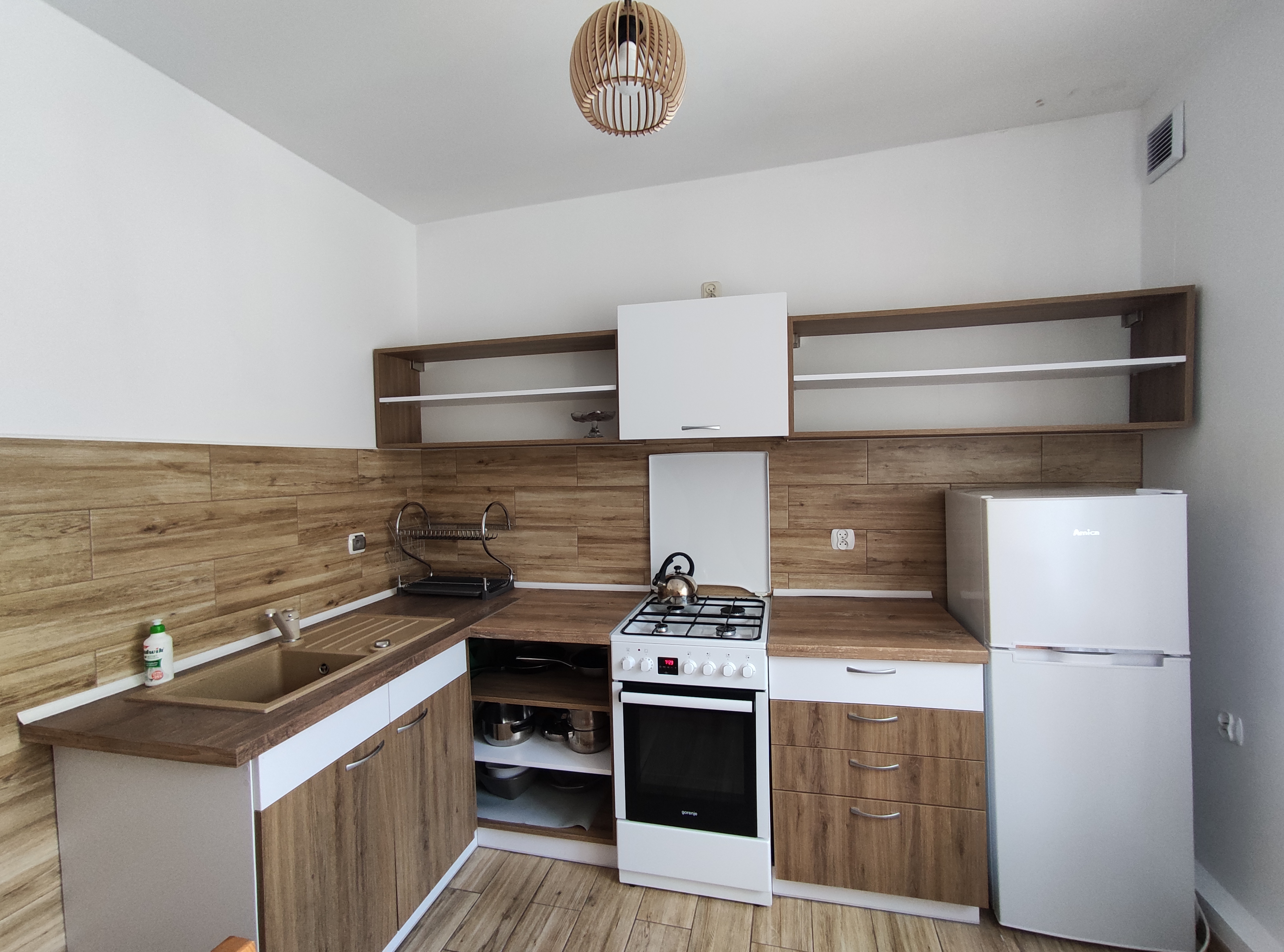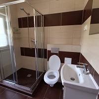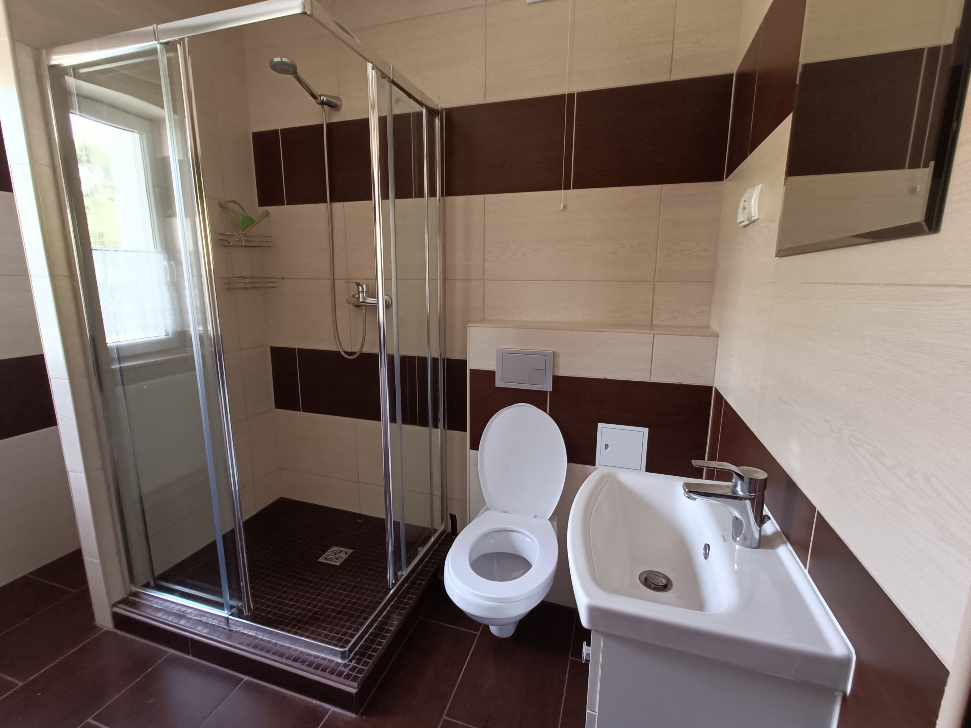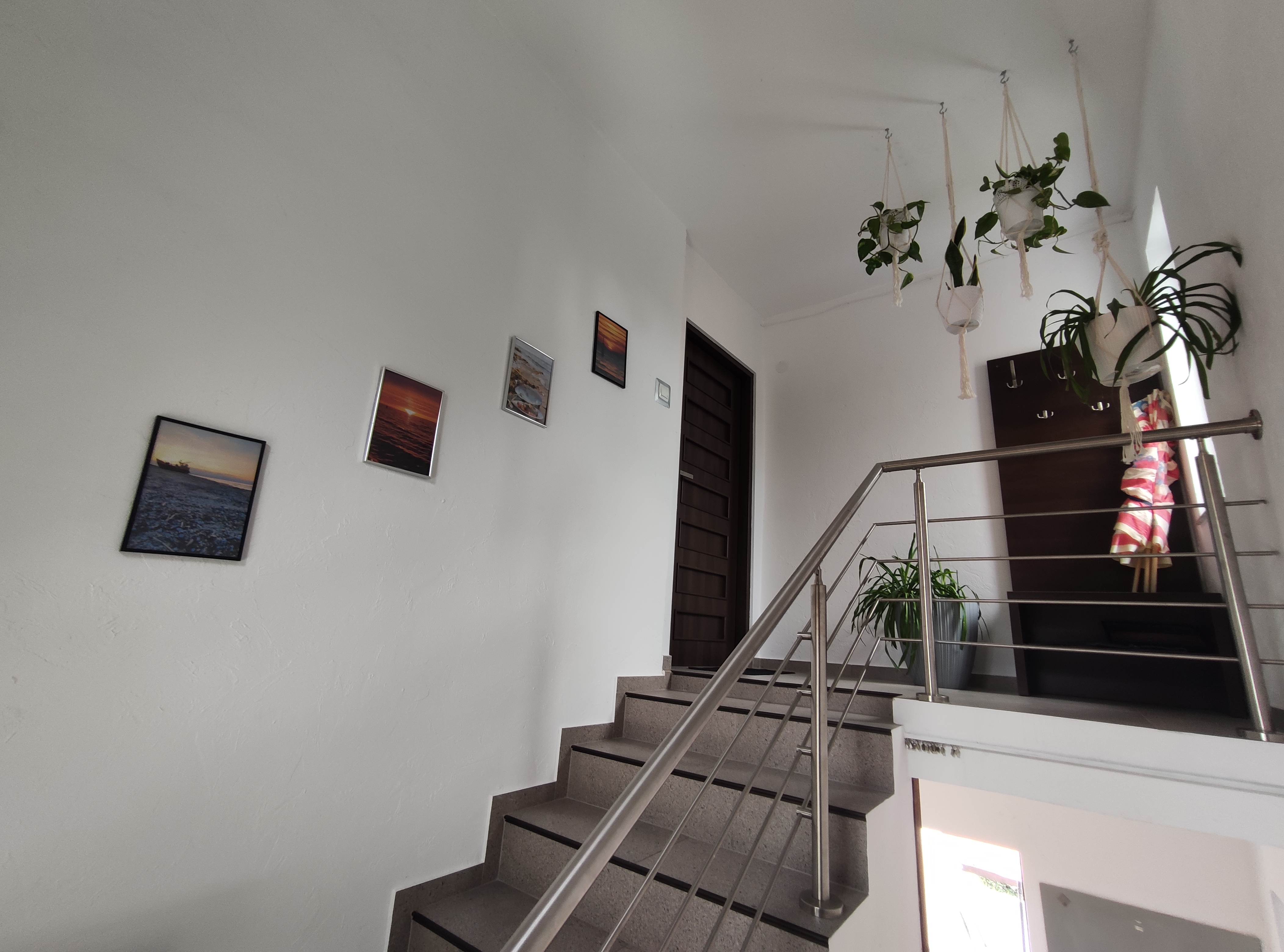 Pokój maści maksymalnie 7 osób, znajduje się na 2 pentrze, trzy sypialni, kuchnia, łazienka, do każdego pokoju balkon z widokiem na zalew